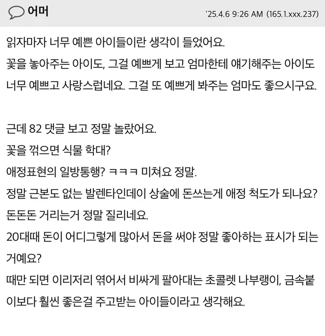 진짜 저렇게 생각하고 사는 사람들이 있구나 싶어서 충격적이긴 하다