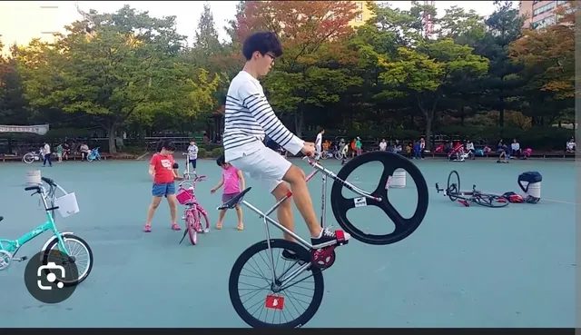 브레이크, 지지대 없는 픽시 자전거 구해와가지고.