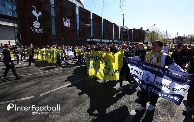 영국 공영방송 'BBC'는 6일(한국시간) 레비 회장을 향한 토트넘 팬들의 민심을 전했다. "사우샘프턴과 경기 전에 토트넘 팬들 수백 명이 '체인지 포 토트넘' 그룹을 조직해 깃발과 스카프를 들고 '이제 그만, 에닉 그룹 아웃'을 외쳤다. 다른 깃발에는 '비즈니스는 잘하지만 축구 클럽을 파괴했다'고 적었다. 레비 회장을 내보내고자 하는 토트넘 팬들의 의지가 보였다"고 전했다.
