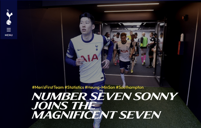 토트넘은 7일(한국시간) 공식 홈페이지를 통해 "손흥민이 사우샘프턴전을 통해 매우 특별한 클럽에 가입했다. 구단 통산 450경기에 출전한 '위대한 7명' 중 한 명이 됐다"라고 전했다.