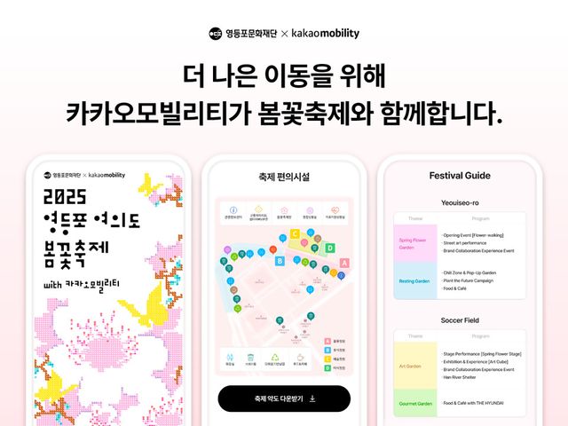 [엠투데이 이정근기자] 카카오모빌리티가 ‘2025 영등포 여의도 봄꽃축제’의 후원사로 참여해 축제 방문객의 이동 편의를 위한 다양한 안내시설과 즐길거리를 한눈에 볼 수 있는 디지털 리플릿을 제공한다고 7일 밝혔다.