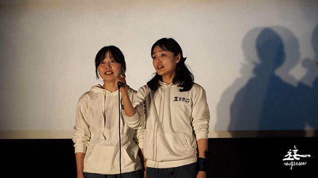 뒤이어 들꽃소리 회장 승민 역의 배우 변하늬가 뉴스공장 출연 당시 불렀던 솔로곡인 ‘오월의 노래’를 다시 한번 짧게 가창했다. ‘여기 죽지 않은 목숨에 이 노래 드리오. 사랑이여 내 사랑이여’라는 가사를 부르다 울컥한 변하늬에게 관객들과 배우들 또한 역시 눈물로 화답해 상영관 속 모두가 하나가 되는 연대의 경험을 나누었다.
