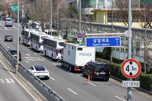 윤석열 전 대통령 탄핵 사흘째를 맞는 지난 6일 서울 용산구 대통령 관저 앞 한남대로가 벽을 이루던 경찰 버스가 대부분 철수한 상태를 나타내고 있다 / 뉴스1