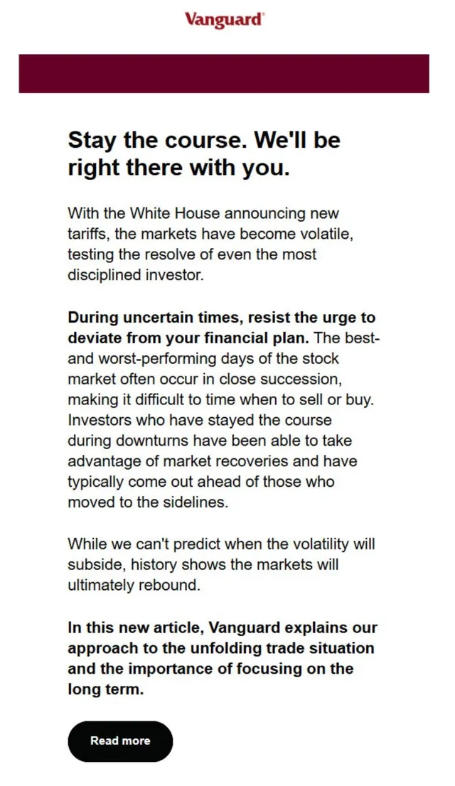 뱅가드가 시장이 폭락하고 고객들에게 보낸 메일