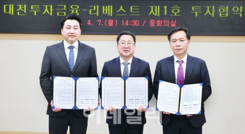 7일 대전시에 따르면 대전투자금융㈜는 이날 대전시청사에서 ㈜리베스트와 10억원 규모의 투자를 위한 업무협약(MOU)을 체결하고, 기술 기반 혁신기업에 대한 선제적 투자를 통한 민간 자본 유입과 스타트업 성장 지원에 나서기로 뜻을 모았다.