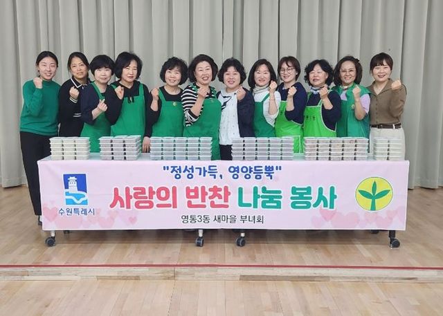 이강여 영통3동장은 “항상 정성스럽게 반찬을 만들어 나눔을 실천하고 있는 영통3동 새마을부녀회에 감사드리며, 봄기운을 가득 담은 반찬을 주민들에게 전달할 수 있어 매우 기쁘다.”고 전했다.