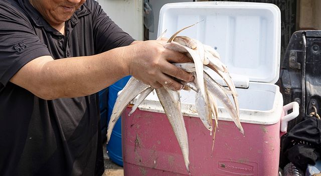 한 어민이 잡아온 웅어를 옮기고 있다. 기사 이해를 돕기 위한 자료 사진 / 연합뉴스