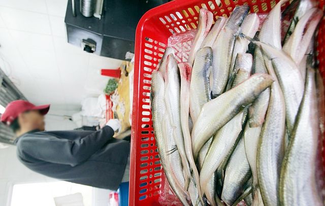 한 횟집에서 주인이 분주하게 웅어 횟감을 준비하고 있다. 기사 이해를 돕기 위한 자료 사진. 한국에서 웅어는 횟감으로 먹는 경우가 많다. 웅어 자체에 워낙 잔가시가 많기 때문에 주로 웅어회는 뼈째 썰어서 회 무침으로 해 먹는다. 물론 다른 생선처럼 웅어를 구워 먹기도 한다. / 연합뉴스