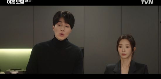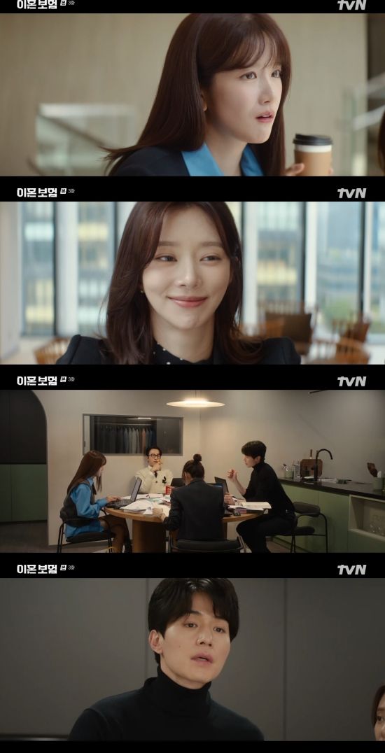 7일 방송된 tvN 새 월화드라마 '이혼보험' 3회에서는 강한들(이주빈 분)이 자신을 배려해 준 노기준(이동욱)의 행동을 떠올리며 미소 짓는 모습이 그려졌다.