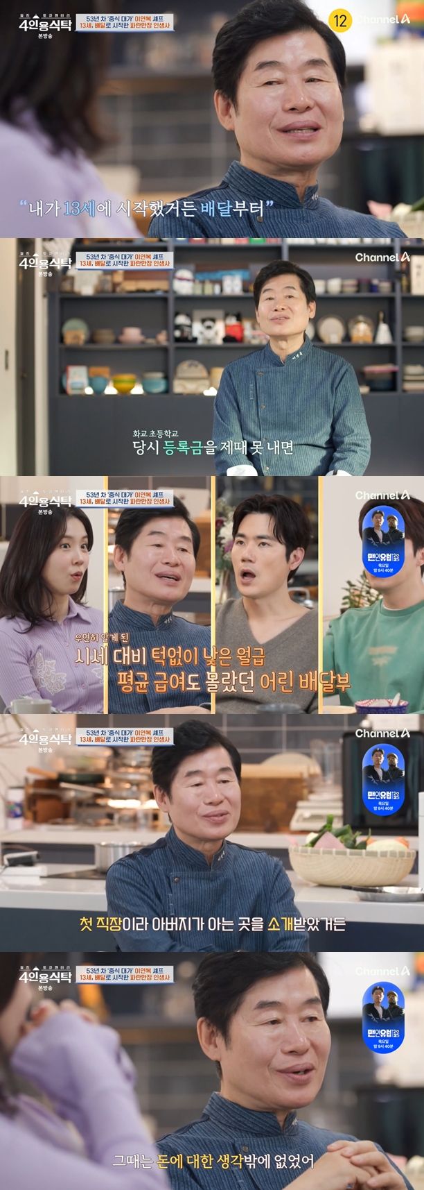 7일 방송된 채널A '절친 토큐멘터리 - 4인용식탁'(이하 '4인용식탁')에는 53년 차 중식 대가 이연복 셰프가 출연했다. 그는 쿠킹 스튜디오로 절친 김강우, 허경환, 장예원을 초대했다.