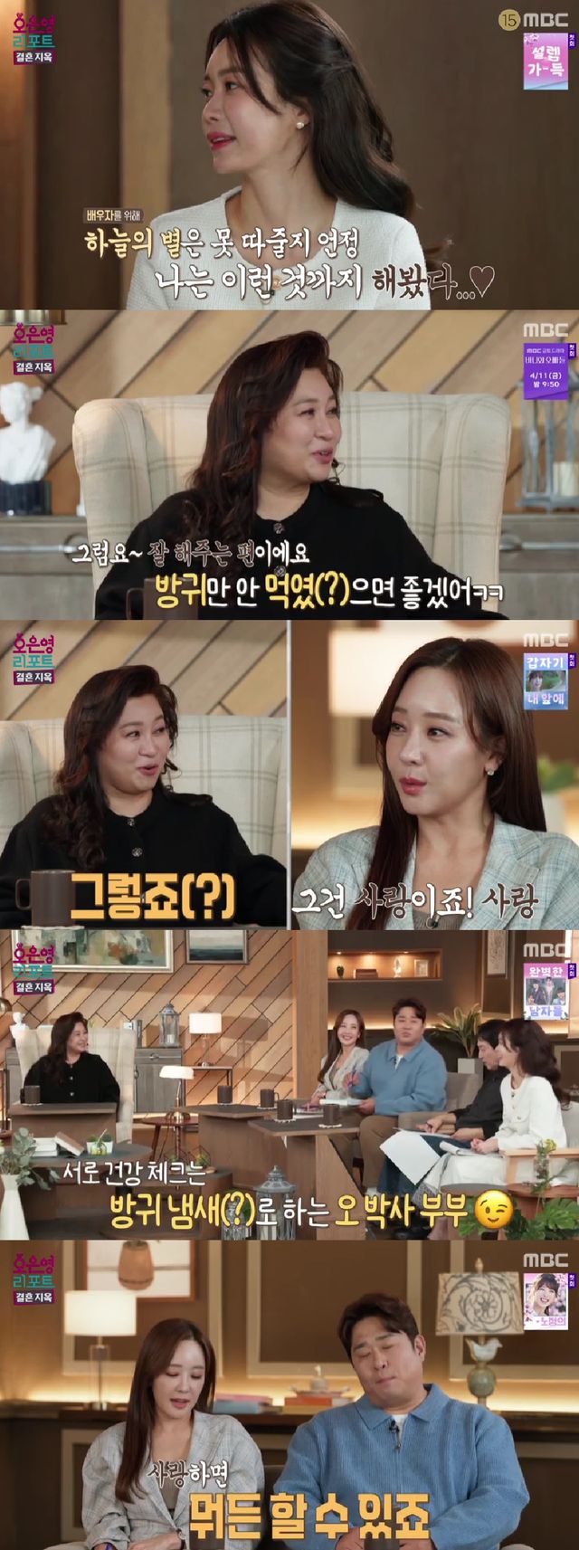 문세윤은 "의사 부부니까 서로 건강 체크를 해주는 거다"고 오은영의 말을 포장했고, 소유진 역시 "사랑하면 뭐든 할 수 있다"며 공감했다.