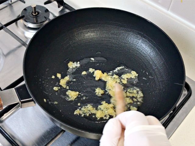 다진마늘 넉넉하게 한숟가락 넣어서 볶아주시고요.