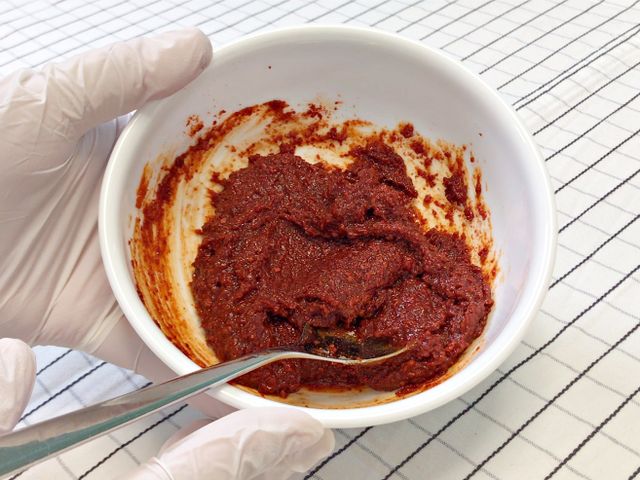 양념장은 고추장 넉넉하게 2숟가락, 고춧가루도 넉넉하게 2숟가락,