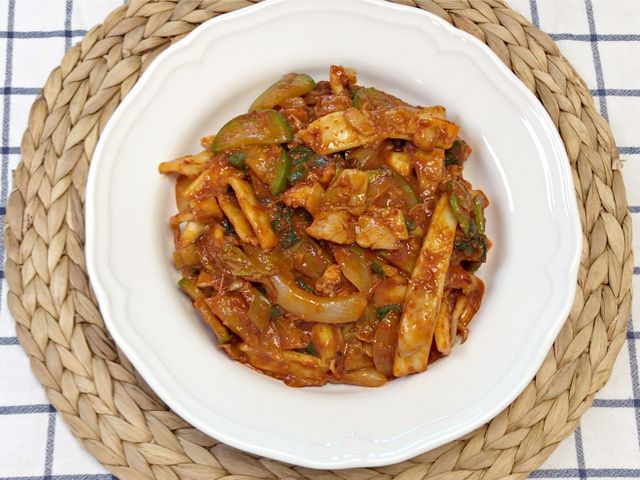쫄깃한 오징어에 매콤달콤한 양념이 착 감기면