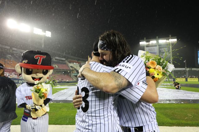 LG 트윈스 외국인 타자 오스틴 딘(32)이 그라운드 안팎에서 박수를 받고 있다.