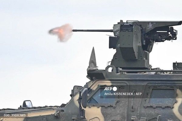 (헝가리=국제뉴스) 김태호 기자 = 헝가리 군인들이 7일(현지시간) 헝가리 베스프렘 마을 근처의 하지마스커 군사 훈련 센터에서 기드란 전술 차량으로 사격하고 있다.