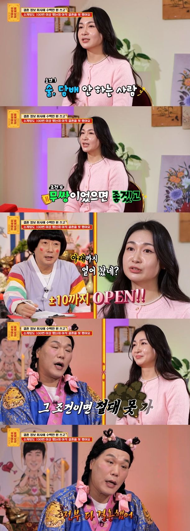 (엑스포츠뉴스 윤현지 기자) '물어보살' 결혼을 원하는 사연자가 까다로운 상대방 조건을 내세웠다.