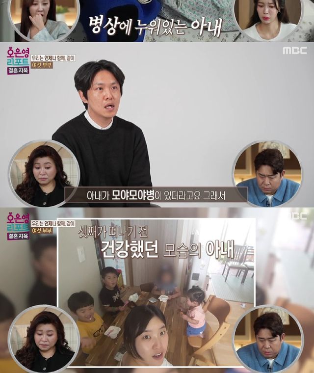 "엄마한테 인사하자"며 가족들을 방으로 이끈 남편. 그 방 안에는 병상에 누워있는 아내가 있었다. 남편은 "태양이가 (하늘로) 떠나고 유전적 요인이 있으니까 (병원에서) 가족들 다 검사해보라고 해서 했는데 아내가 모야모야병이 있더라"고 밝혀 충격을 더했다.