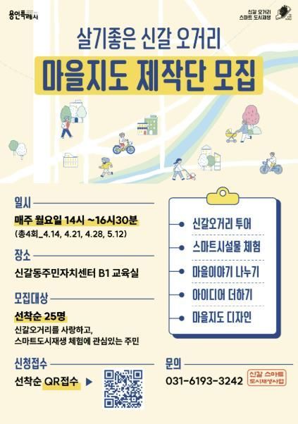 시 관계자는 “자신이 살고 있는 신갈오거리의 변화와 발전상을 마을지도로 제작하는 주민참여형 프로그램은 지역의 정체성과 역사, 문화를 돌아보는 기회가 될 것”이라고 말했다.