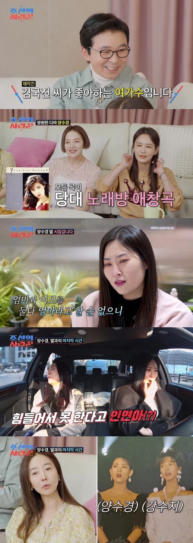 그런가 하면 양수경은 "내 동생은 마지막 전화를 나하고 했다. 고등학교 때부터 채영이처럼, 친구였고... 헌신적으로 나를 챙겨주던 동생이었다"고 먼저 세상을 떠난 여동생을 떠올렸다. 이어 "나는 외로움을 많이 탄다. 동생이 나 외롭지 말라고 채영이를 남겨준 것 같다"고 속내를 밝혔다.