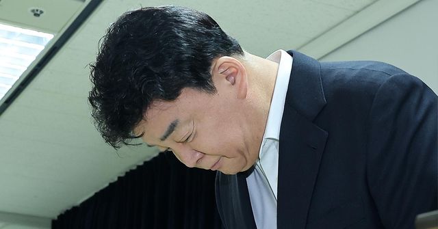 백종원 더본코리아 대표가 지난달 28일 서울 서초구 스페이스쉐어 강남역센터에서 열린 정기 주주총회에서 고개 숙여 인사하고 있다. / 뉴스1