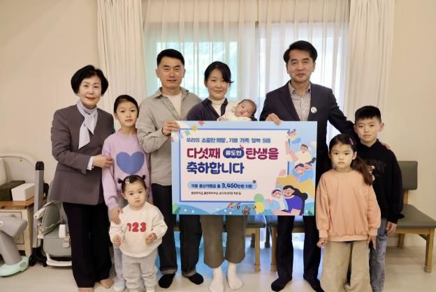 [파이낸셜경제=김영란 기자] 전국적으로 저출산 기조가 이어지는 가운데 보은군은 지난 7일 다섯째 아이를 출산한 다둥이 가족이 탄생해 축하 메시지를 전달하고 따듯한 격려의 마음을 전했다.