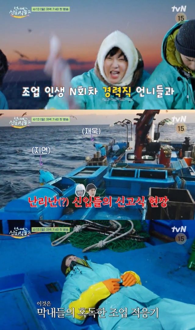 조업 인생 N회차 경력직 언니 염정아, 박준면이 고기잡이를 위해 "땡겨 땡겨", "이거 어떻게 먹어야 돼? 대구탕?"이라며 남다른 본업 모멘트를 보여주는 것과 달리, 조업 경험이 전무한 신입 막내 임지연, 이재욱은 혹독한 조업 신고식을 치르며 시선을 사로잡고 있다.