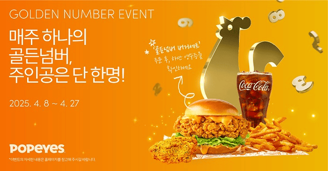 이벤트는 신메뉴 구매 고객을 대상으로 진행되며, 세트 구매 시 제공되는 영수증 하단의 ‘골든넘버’를 통해 웹사이트에서 실시간으로 당첨 여부를 확인할 수 있다.
