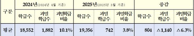 전국의 특수교육 대상자는 2022년 10만3695명에서 2023년 10만9703명, 지난해 11만5610명으로 꾸준히 증가했다. 이에 따라 과밀학급 비중도 같은 기간 8.8%(2022년), 9.9%(2023년), 10.1%(2024년)로 늘었다. 교육부는 “최근 특수교육대상자가 큰 폭으로 증가함에 따라 과밀 특수학급도 매년 늘어나는 추세로 이러한 문제가 특수교육 여건 악화로 이어질 수 있는 시급한 상황이었다”고 했다.