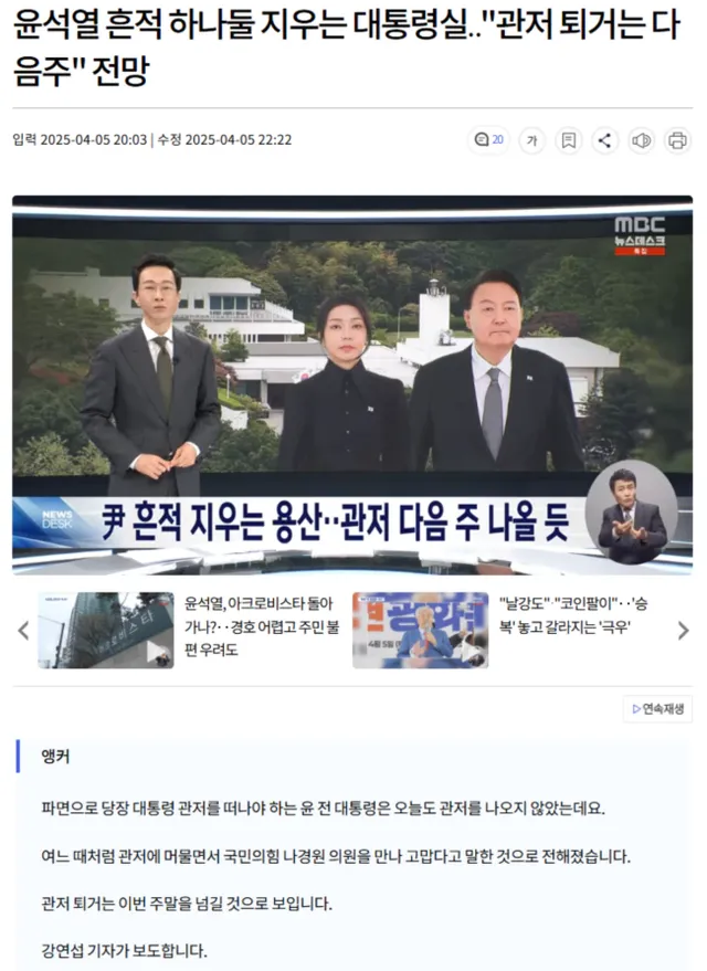 尹 흔적 지우는 용산.. 관저 다음 주 나올 듯