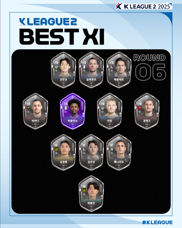 [하나은행 K리그2 2025 6R MVP, 베스트 팀/매치, 베스트11]
