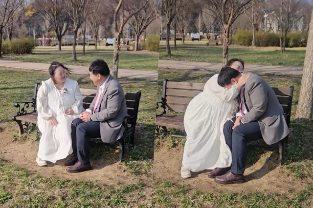 공개된 영상 속에는 정은혜와 예비 신랑이 한 공원에서 웨딩 스냅 촬영을 하고 있는 모습이 담겼다. 순백의 원피스를 입은 정은혜는 예비신랑을 바라보며 행복한 미소를 짓고 있다. 서로를 바라보며 무언가 이야기를 나누던 두 사람은 이내 수줍게 포옹하는 모습으로 훈훈함을 더했다.