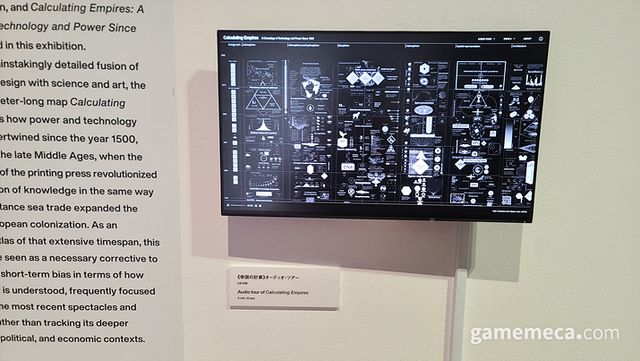 ▲ 케이트 크로포드(Kate Crawford)와 블라댄 졸러(Vladan Joler)의 24M 길이 작품 '칼큘레이팅 엠파이어' (사진: 게임메카 촬영)