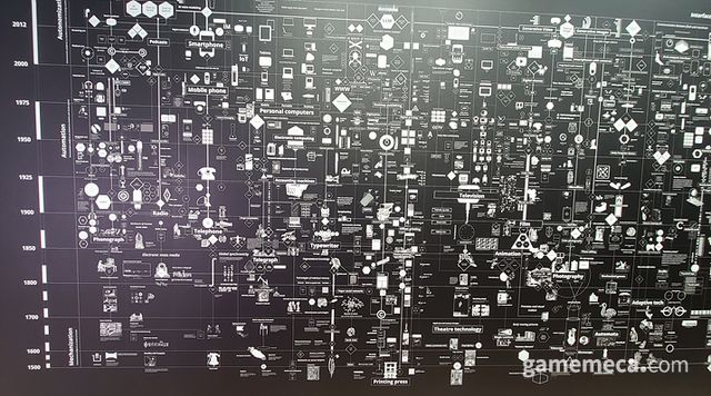 ▲ 도입부에서는 기계, AI, 예술 발전 등을 글과 픽토그램으로 설명하고 있다 (사진: 게임메카 촬영)