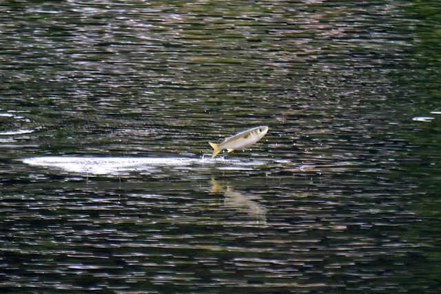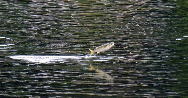 2024년 4월 30일 오전 경북 포항시 남구 연일읍 형산강에서 숭어 한마리가 뛰어오르고 있다 / 뉴스1
