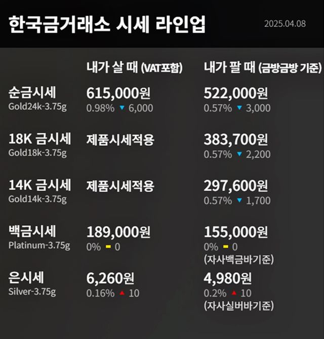 순금(24K) : 매입가 61만 5000원 / 매도가 52만 2000원