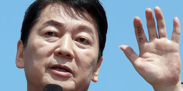 대선 출마 기자회견에 나온 안철수 국민의힘 의원이 손가락에 적은 글씨가 화제가 됐다.