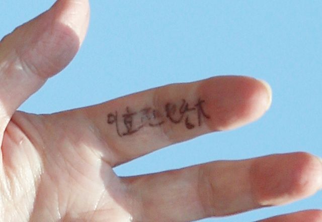 다음은 안철수 의원 손가락에 적힌 글씨 사진이다.