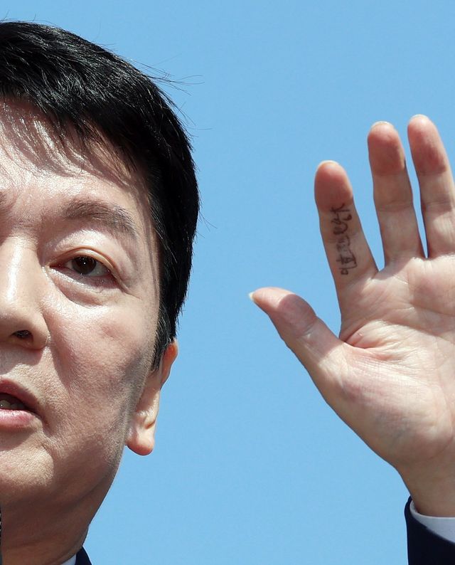 이런 가운데 이날 출마 선언식에서 화제가 장면도 나왔다. 당시 안 의원이 손가락에 적은 글씨가 취재진 카메라에 포착됐다.