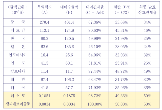 "상대국 관세는 물론 각종 비관세 무역장벽까지 두루 고려해 국가별 관세율을 산정했다."
