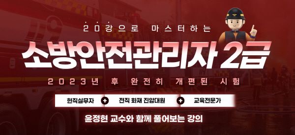 2025년 해당시험에 합격을 위해서는 반드시 변경된 출제기준에 맞춘 엑기스 학습과 실제시험에 대비한 기출문제풀이 및 예상출제문제에 대비하여야 한다. 강의는 2023년 이후 전면 개편된 출제기준에 대해 완벽히 마스터하고 개편된 세부단원 심층분석 예상문제부터 기존 기출문제와 신규 예상기출문제까지 실전시험에 최적화된 엑기스 컬리큘럼으로 승부수를 걸었다. 강습교육만으로 버거우신분, 처음 소방분야 자격증을 접하시는분, 소방분야로 제2의 취업을 고민하시는분들에게 단기간 자격증 합격으로 다가설 수 있는 매우 효율적인 강의라고 교육 담당자는 말한다.