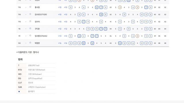 ▲여자선수권부 1.오수민 -19(우승), 2.이효송 -15, 3.성아진 -14, 4.양윤서 -12, 5.이시은 -12, T6.김시현(0608)-정민서 -11, T8.서교림-박서연 -10, 10.유아현 -9.