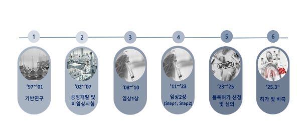 질병관리청에서는 ‘97년부터 탄저백신 후보물질 발굴을 시작으로 백신 개발을 위한 기반 연구를 수행했으며, ㈜녹십자와 백신 공정개발 및 임상시험 등을 수행하여 ‘23년 10월 의약품 품목허가를 신청했고, 엄격한 심의 절차를 거쳐 최종 품목허가를 취득했다.