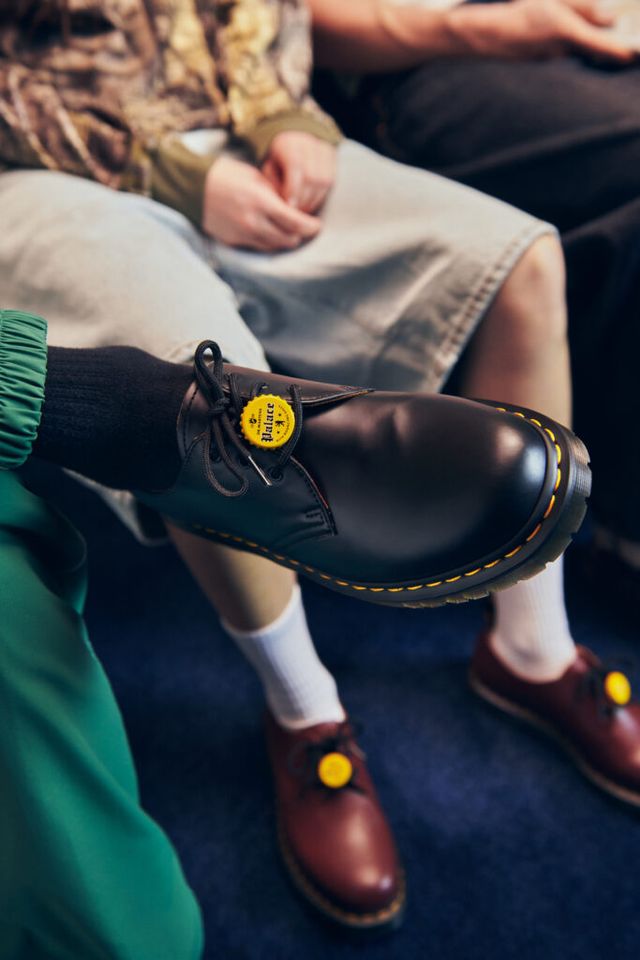 이번 협업에서 가장 눈길을 사로잡는 요소는 슈레이스에 달린 그롤쉬(Grolsch) 보틀캡 레이스 참입니다. 닥터마틴을 상징하는 옐로 컬러의 레이스 참 디자인은 맥주병의 병뚜껑을 연상케 하는데요. 보틀캡 레이스 참이 더해진 해당 협업 제품은 1988년도에 유행했던 스타일링을 구현한 제품입니다. 당시 쌍둥이 밴드 브로스(Bros)의 멤버 맷 고스(Matt Goss)가 자신의 닥터마틴에 그롤쉬 사의 맥주 병뚜껑을 달고 촬영을 했던 것이 젊은 층 사이의 유행으로 번졌었죠.