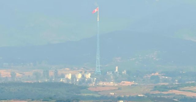 경기도 파주시 오두산 통일전망대에서 바라본 북한 황해북도 개풍군 기정동 마을에 대형 인공기가 휘날리고 있다. /뉴스1