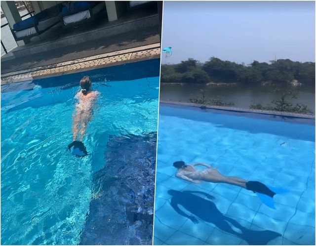 특히 그는 수영복을 입고 유려한 몸선을 자랑하는 것은 물론, 발에는 오리발을 착용해 그림자마저 인어 같은 모습을 완성해 눈길을 끌었다.