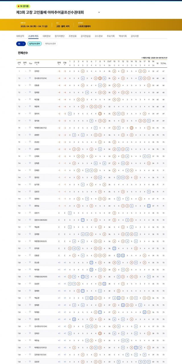 ▲제3회 고창 고인돌배 아마추어선수권 1라운드 순위(남자선수권부)