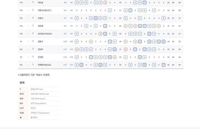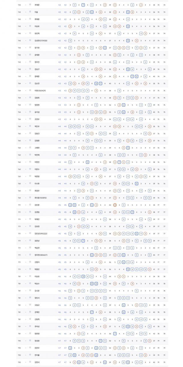 ▲여자선수권부 1.오수민 -19(우승), 2.이효송 -15, 3.성아진 -14, 4.양윤서 -12, 5.이시은 -12, T6.김시현(0608)-정민서 -11, T8.서교림-박서연 -10, 10.유아현 -9.