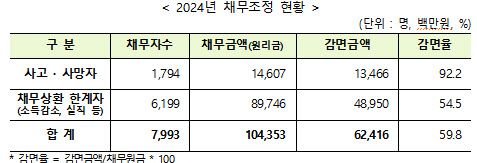 8일 대부금융협회에 따르면 지난해 대부금융업체들은 사고·사망자 1794명의 채무액 146억원 중 134억원을 감면(92%)했다. 소득 감소, 실직 등으로 경제적 어려움을 겪는 채무자 6199명의 원리금 897억원에 대해서는 총 489억원을 감면(54.5%) 조치했다.