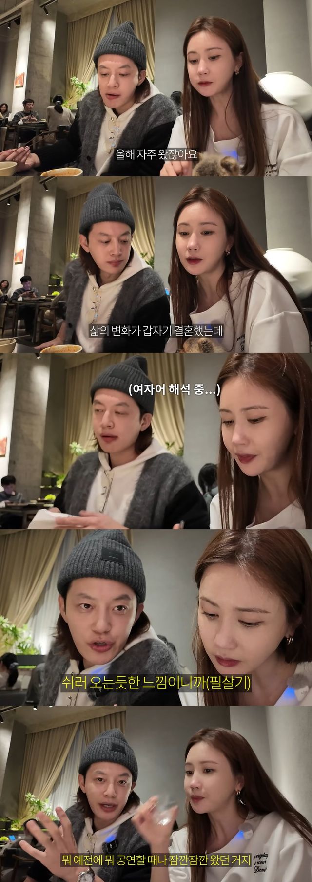 그러면서 “그리고 자기가 나 보러 뭐 바쁜 와중에도 시간도 내주고, 기다려도 주고, 일도 막 같이 막 해주면서 삶의 변화가 갑자기 결혼했는데, 신혼도 즐길 새도 없이 갑자기 많은 변화가 있었는데 어땠어?”라고 세븐에게 질문했다.